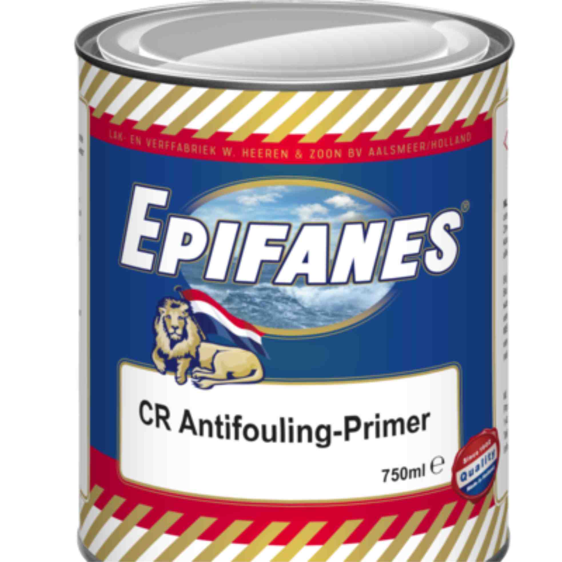 Epifanes CR Antifouling Primer is een onderwater- en antifouling primer op basis van chloorrubber Sneldrogend en breed inzetbaar op diverse ondergronden. Bij voldoende laagdikte (min. 300 micron = 5 à 6 lagen) uitstekend roestwerend en conserverend. De chloorrubber zorgt voor voldoende elasticiteit/taaiheid om eventuele werking in de ondergrond op te vangen. Toepassing: Beschermend onderwatersysteem voor staal hout, aluminium en eventueel polyester. Tevens toepasbaar als schakellaag van bestaande (resten van) antifouling en teerhoudende systemen naar een harde en/of zelfslijpende antifouling. Kwastverwerking: Epifanes D-100 verdunning. Overschilderbaar: Met zichtzelf na 24 uur bij 18°C. Met antifouling na 24 uur bij 18 °C. Uitstrijkvermogen: 7 m² per 750ml. @ 50 µm droge laagdikte Kleur: zilverkleurig
